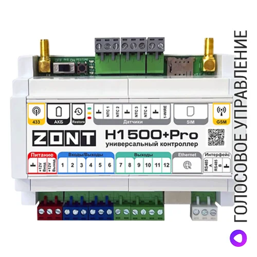 Универсальный отопительный контроллер ZONT H1500+ PRO, голосовое управление Алиса.