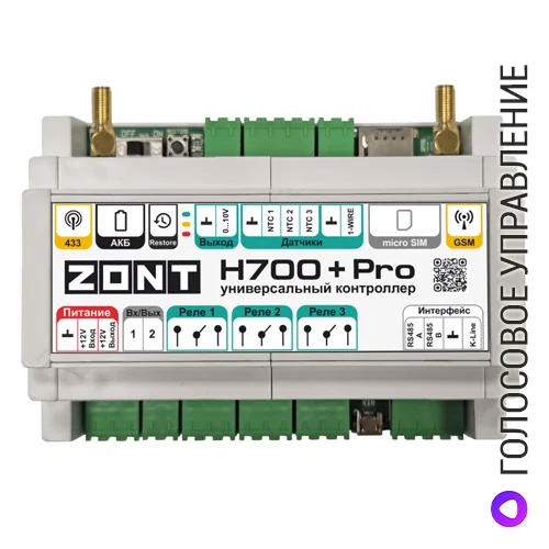 Wi-Fi/GSM контроллер для удаленного управления инженерной системой ZONT H-700+ PRO, поддержка голосового помощника Алисы.