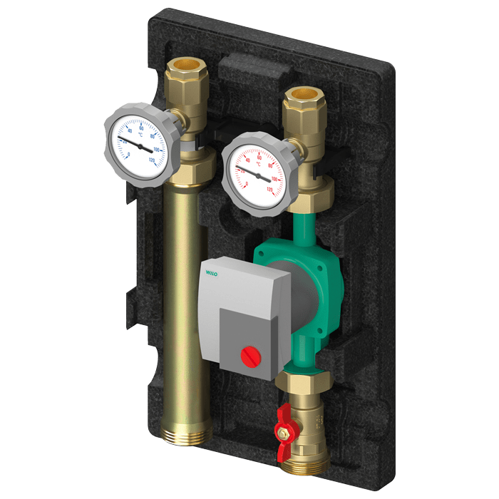 Область применения: нерегулируемый (прямой) контур, теплоноситель в котором подается напрямую с температурой источника тепла. Используется для подключения контура радиаторного отопления, загрузки водонагревателя ГВС, подогрева бассейна, прямого контура вентиляции и в качестве котлового контура.