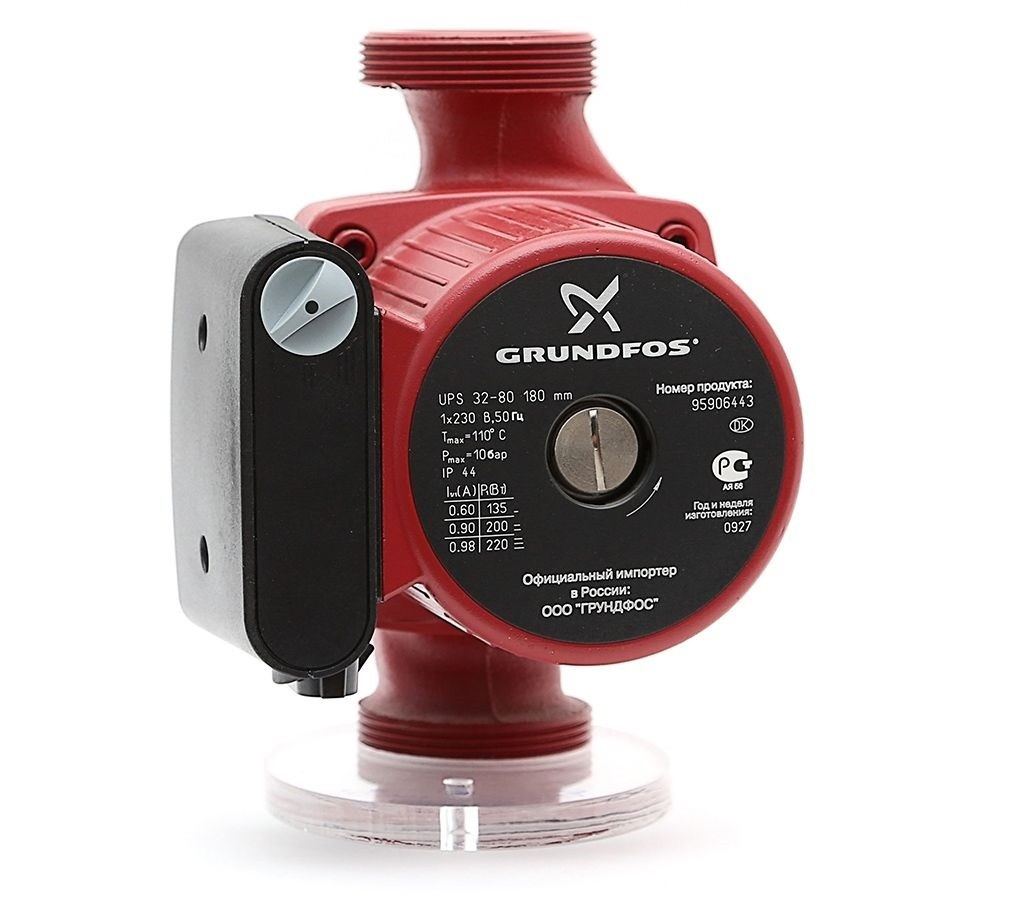Grundfos UPS 32-80 – циркуляционный насос для систем отопления. Предназначен для обеспечения принудительного движения жидкости по замкнутому контуру (циркуляции), а также рециркуляции.
